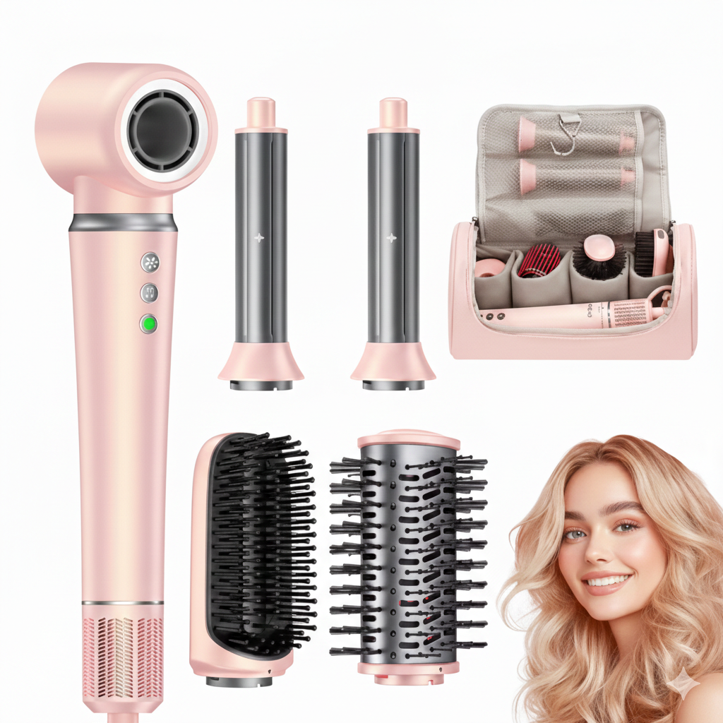 The kit includes 5 premium interchangeable attachments with a ceramic coating for even heat distribution and a flawless finish: